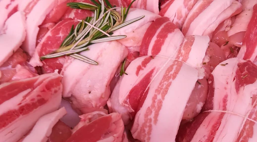 Gefülltes Kaninchen mit Schweinefilet und Speck