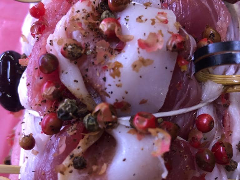Hühnerspieße mit Zitrusfrüchten und Lorbeerblatt