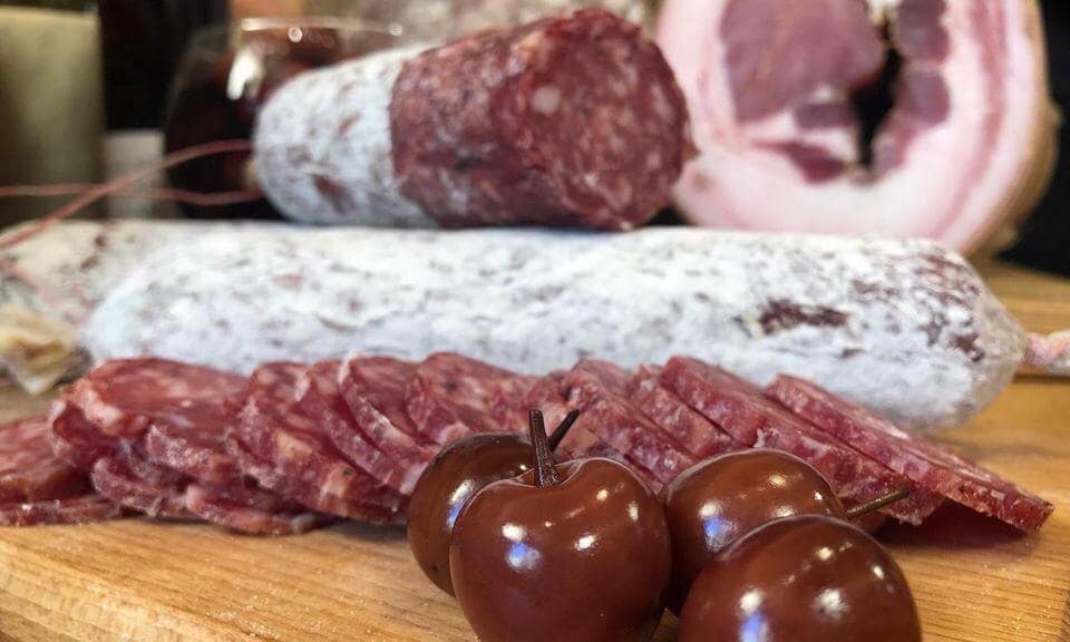 Zutaten und Verfahren: Schweineschulterfleisch (60%) und Schweinebauch (40%) grob gehackt; Das gewürfelte Schmalz wird nicht wie im toskanischen hinzugefügt. Kirschen in Alkohol werden hinzugefügt (da sie frei von Konservierungsstoffen sind und den Geschmack nicht verändern) und Festa-Likör, ein Lari-Likör aus Kirschen. Kirschen und Likör ersetzen den Wein, der ursprünglich in Salami eingelegt wurde. Einmal gefüllt, wird es mindestens einen Monat lang gedünstet und gewürzt, dann kann es genossen werden.
